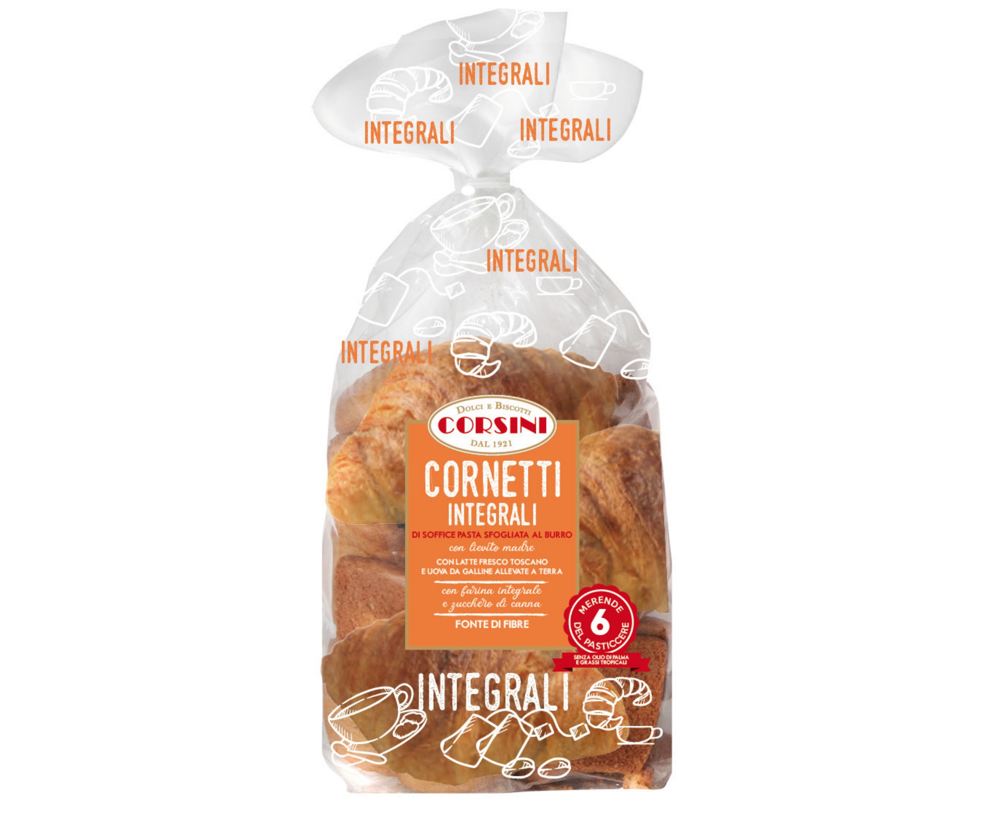 6 cornetti confezionati singolarmente. |